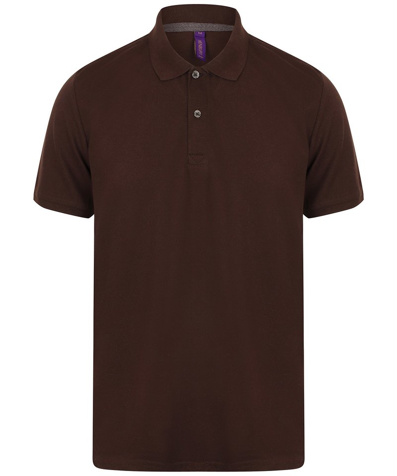 Modern-fit in a lightweight micro-fine piqué with a short point collar, fitted sleeve and cuffs for a modern and fresh new look. Micro-fine piqué is ideal for printing. 2 Button placket, Dyed to match buttons. Contrast herringbone tape in back neck and side vents. Henbury Cut-out back neck brand label.